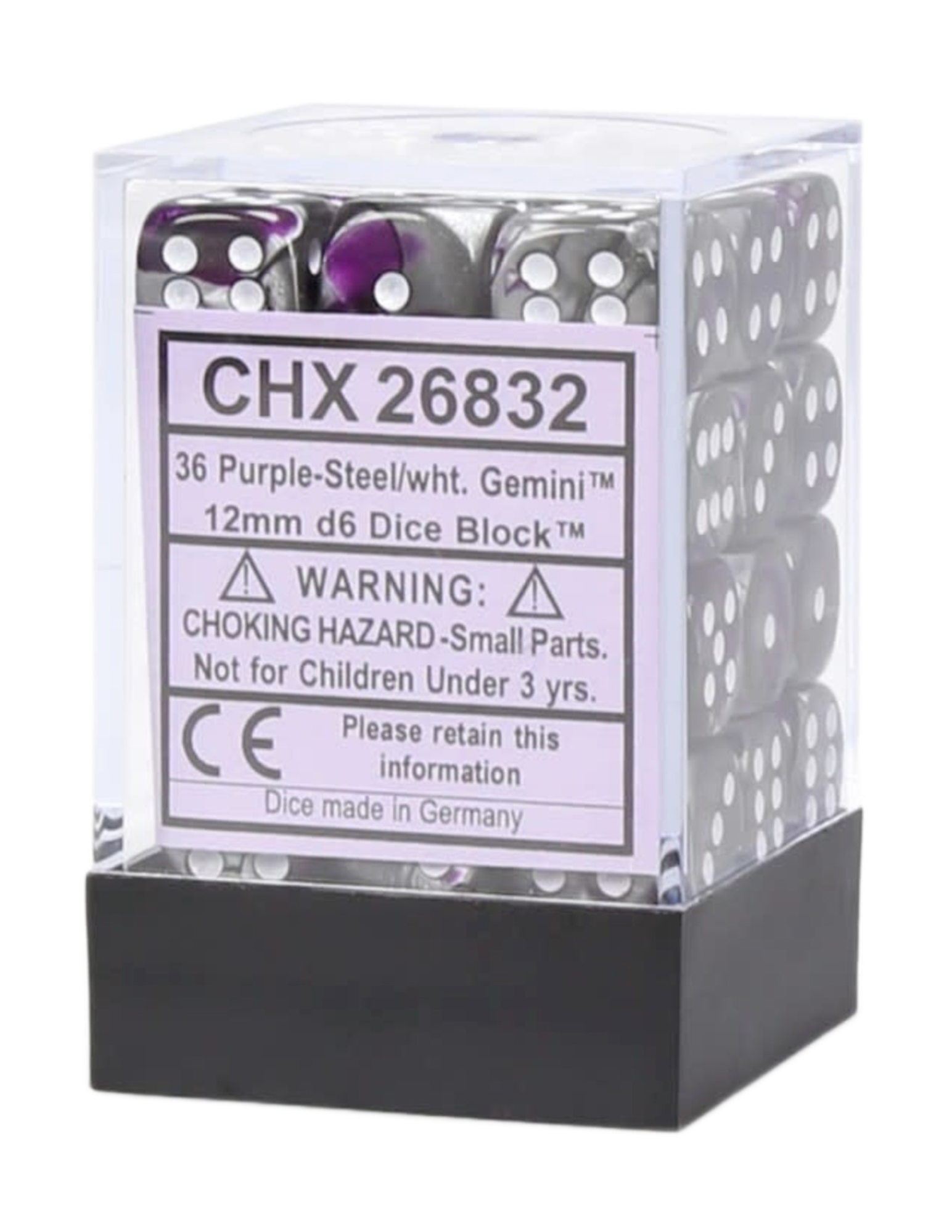 Chessex: Gemini Purple-Steel/White 12Mm D6 Dice Block (36 Dice)