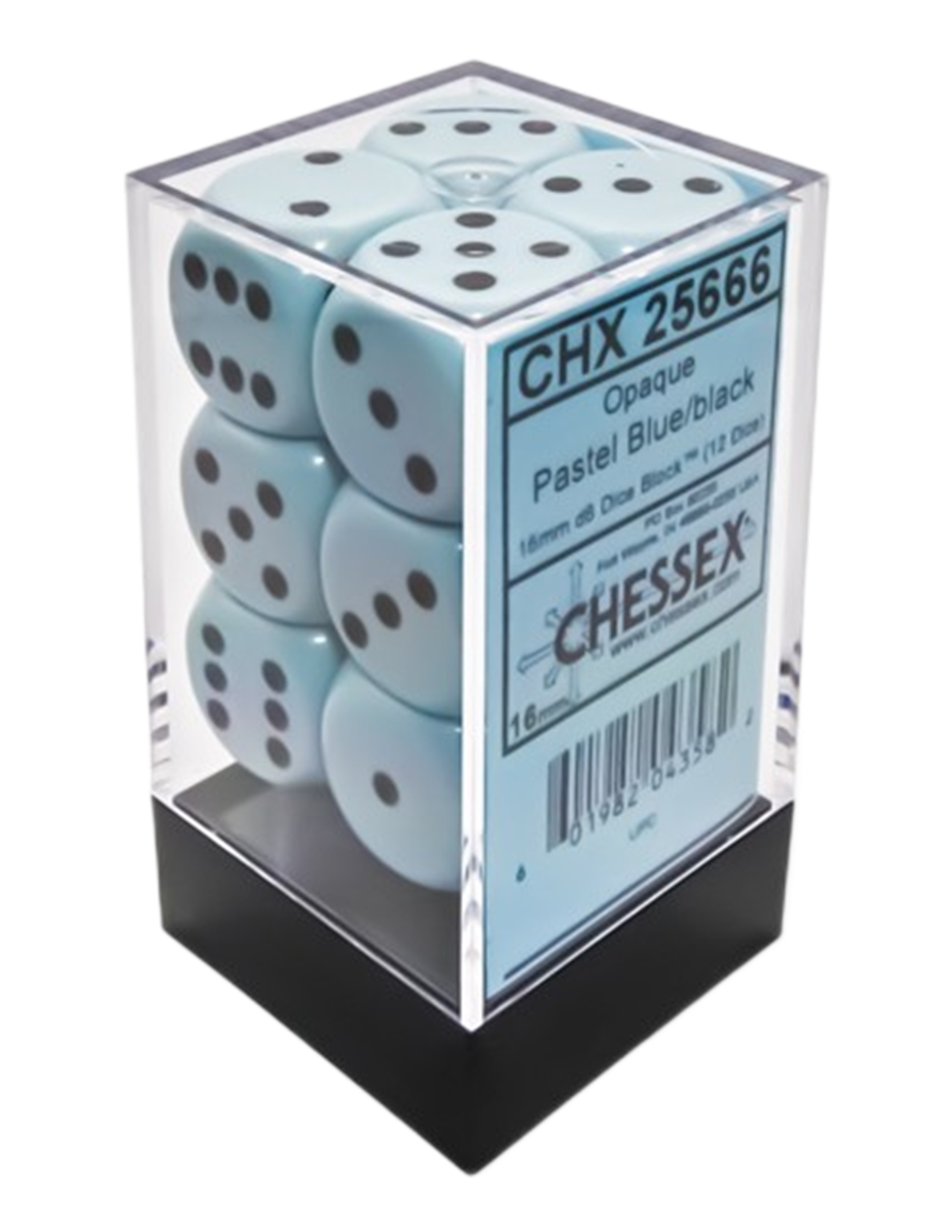 Chessex Opaque 16mm d6 Pastel Blue/black Dice Block (12 dice)