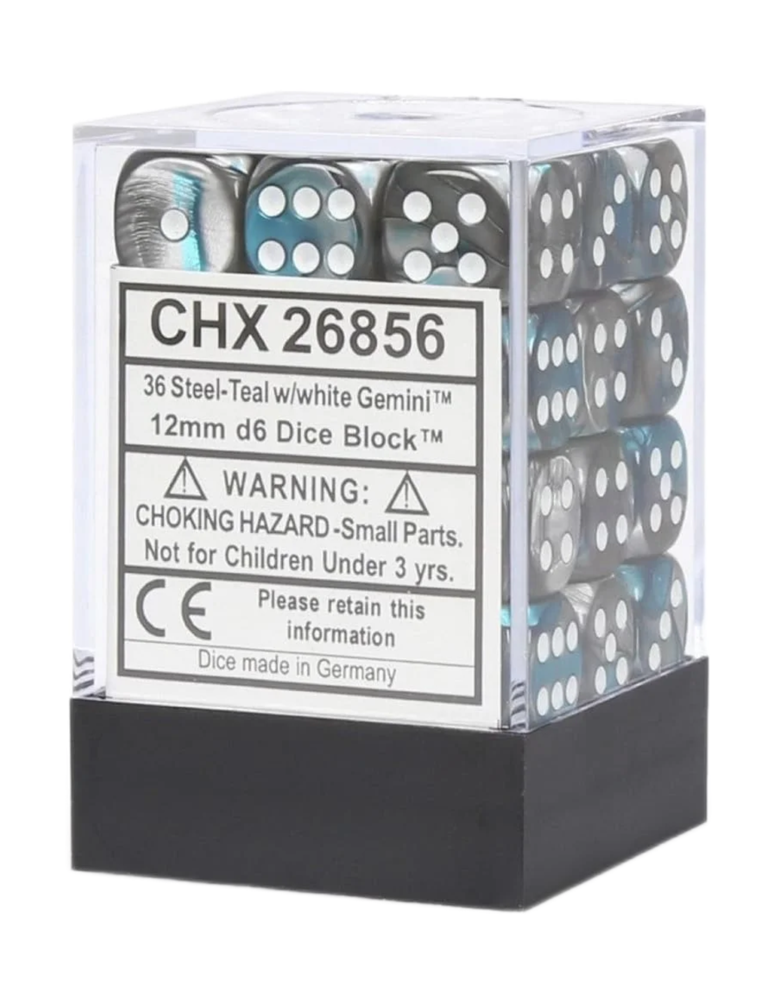 Chessex: Steel-Teal With White 12Mm D6 (36 Dice)