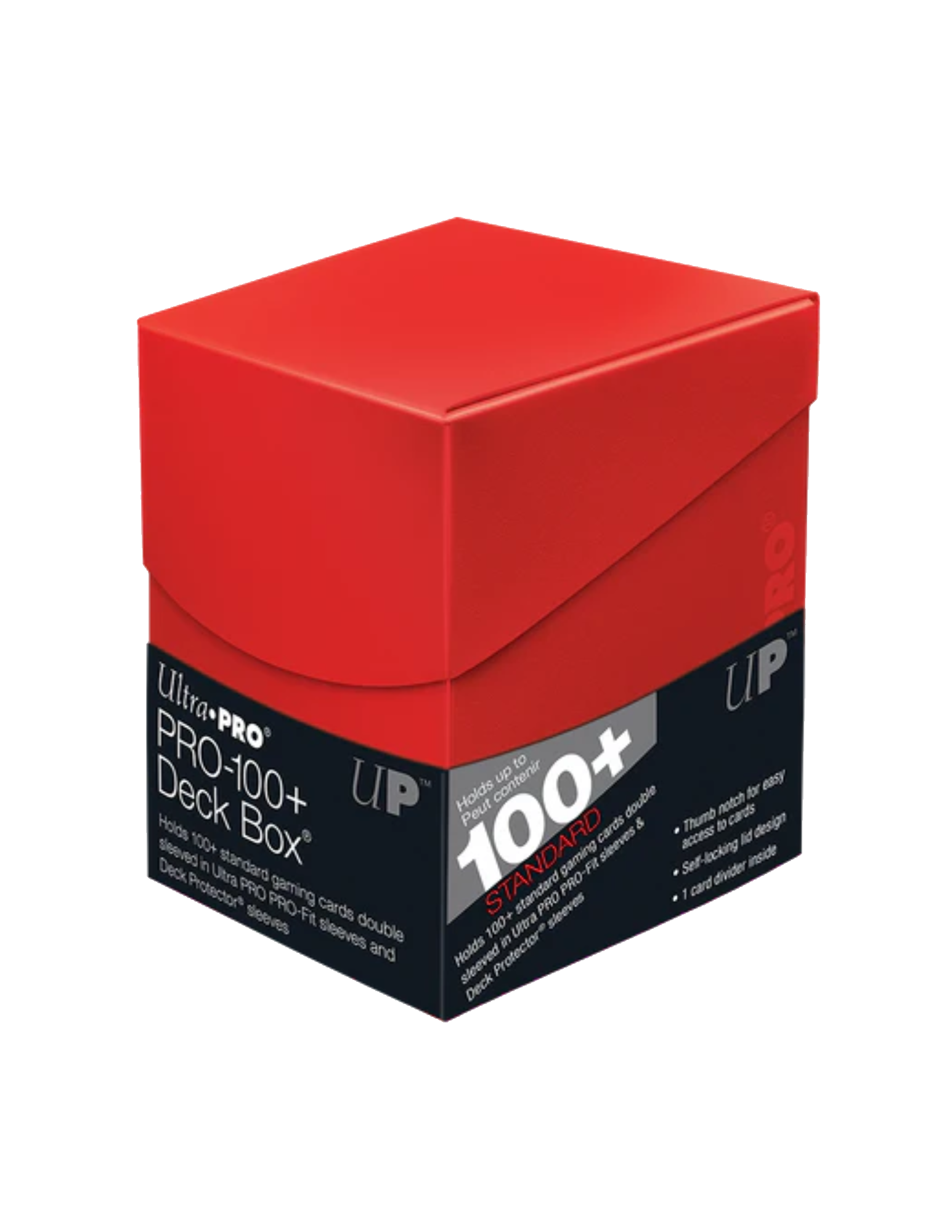 Ultra PRO's Eclipse PRO 100+ Deck boxes are compact and convenient ways to hold up to 110 standard-sized cards in Deck Protector sleeves. Each durable card storage box is equipped with a self-locking lid design with a built-in thumb notch for easy access to your cards